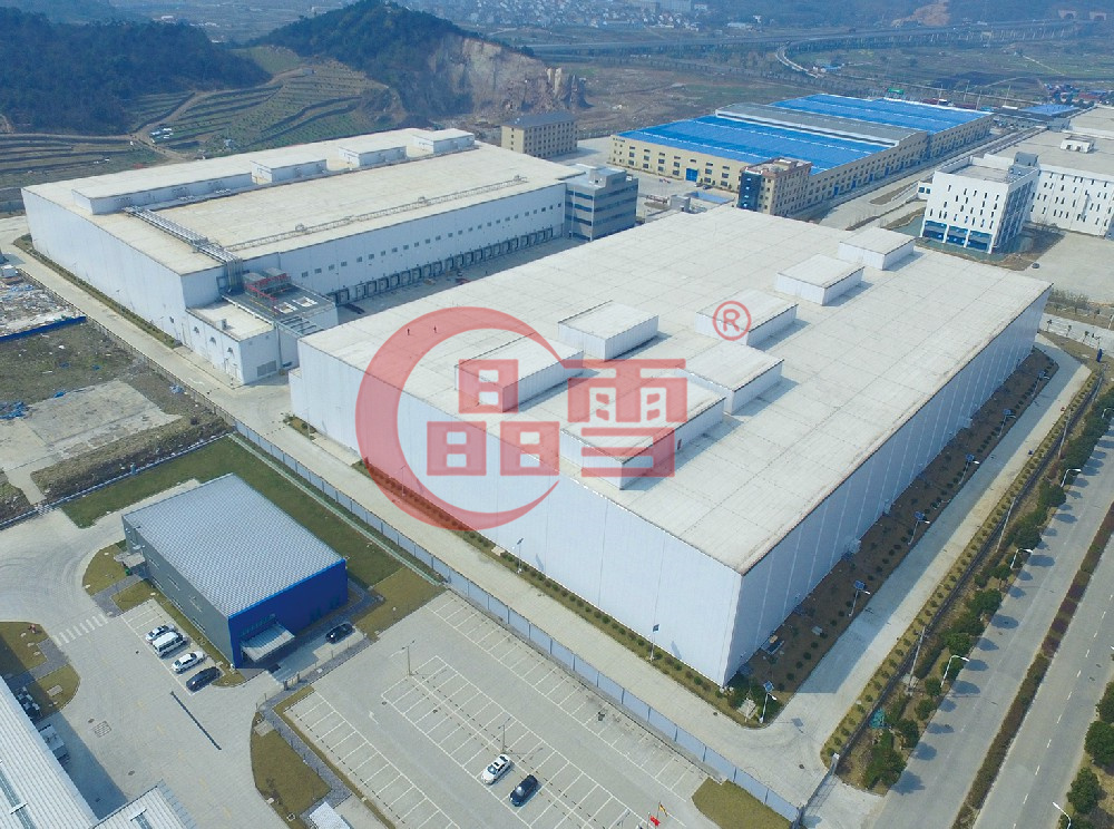 太古冷鏈物流有限公司高架冷庫(kù)為單層鋼結(jié)構(gòu)外保溫式冷庫(kù),儲(chǔ)存70,000托板以上??偨ㄖ娣e約44,119m2 ,總占地面積約38,000m2。主體冷庫(kù)墻板采用200mm接插式PIR庫(kù)板,防火墻采用200mm結(jié)構(gòu)巖棉,夾芯板穿堂采用150 mm接插式PIR庫(kù)板,總庫(kù)板面積約為75000m2。